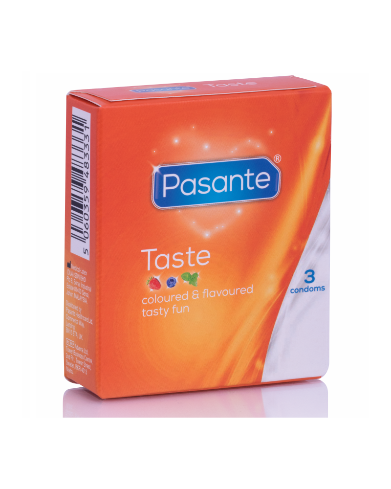 Pasante Taste sono preservativi colorati e aromatizzati, pensati per aggiungere un tocco di piacere e originalità grazie ai loro quattro deliziosi sapori: