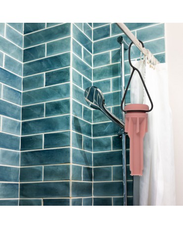 - Appendi lo stendino a un’asta o a una barra stabile in un’area che non rischi danni da acqua, come il portasciugamani del bagno o le maniglie della doccia. EVITA di posizionarlo sopra o vicino a dispositivi elettrici o fonti di corrente.