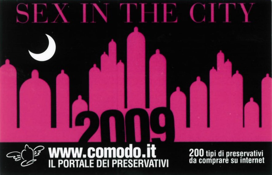 E così eccoli sfilare in rassegna: nel 2005 la fotografia vincitrice del primo concorso “Il preservativo è… Comodo”, nel 2006 una lucida tromba pronta a suonare fanfare sotto le lenzuola, nel 2007 un profilattico annodato come promemoria di utilizzo, nel 2009 – con un occhio strizzato alla universalmente nota serie tv americana – un Sex in the city sullo skyline di grattacieli fucsia a forma di profilattico gigante.