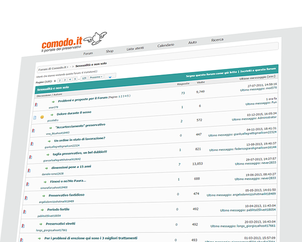 Questo e tanto altro è il forum di Comodo.it: tutti i migliori consigli e pareri su sessualità, sicurezza e prevenzione. Una piazza virtuale di consulenza dove parlare di sesso a 360 gradi in assoluta serenità e, se si desidera, anche in forma anonima.