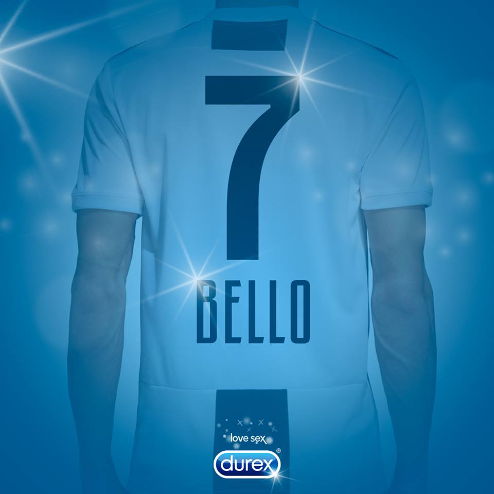 La magnifica – per qualcuno esagerata – trovata pubblicitaria porta la firma dei preservativi Durex, il più storico e longevo marchio di profilattici, che ha deciso di accostare al suo tradizionale cavallo di battaglia – il “Settebello” in lattice trasparente – la maglia del giocatore più atteso dalla compagine sportiva bianconera.