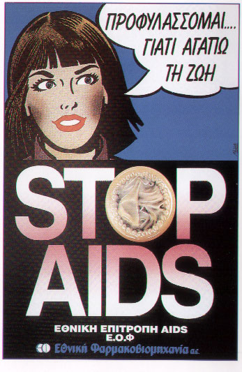 Se ami la vita, la proteggi. I manifesti della Grecia promuovono l’uso dei preservativi, proteggi te stesso e le persone che ami. Fai l’amore responsabilmente!