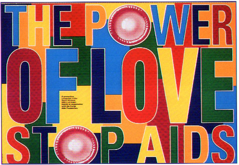 Il potere dell’amore può salvare il mondo dall’Hiv, proteggi te stesso e il/la partner. I manifesti della Svizzera dicono “Stop all’Aids!”