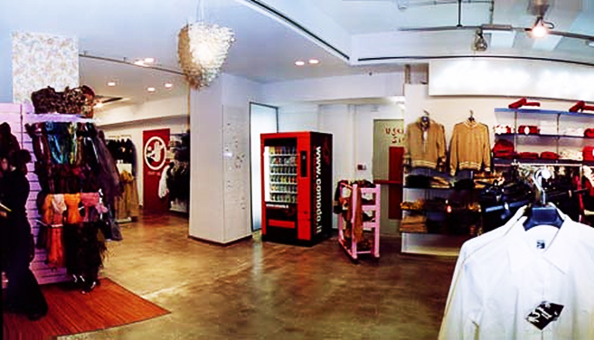 Il prototipo fu collocato nella galleria di Piazza Colonna a Roma e inaugurato nel 2003, quando la catena Rinascente festeggiò l’arrivo del suo Jam Store, primo punto vendita plurimarca dedicato interamente ai giovani. Un altro distributore prototipo fu collocato all’ingresso della discoteca pugliese Divinae Folliae, nella città di Bisceglie, all’epoca ritrovo di tutto il popolo della notte del sud Italia. La sua presenza si fece notare.