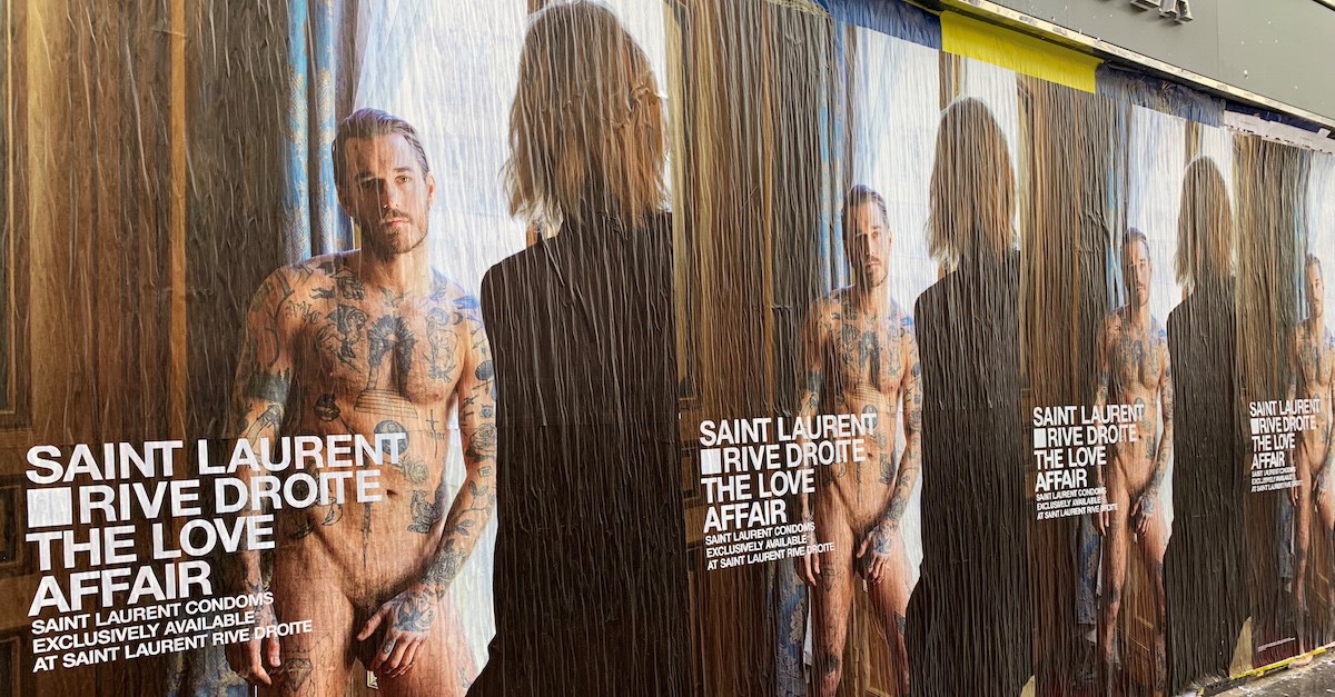 La campagna di Saint Laurent “The Love Affair” specifica che i preservativi di YSL sono in vendita soltanto nel nuovo suo concept store sulla Rive Droite, a Parigi.