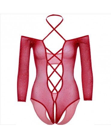 Scopri l'incontro perfetto tra lusso e sensualità con il nostro straordinario body a rete senza cavallo, impreziosito da raffinati strass che donano un'elegante brillantezza. Questo modello seducente unisce la trasparenza audace della rete all'eleganza senza tempo degli strass, creando un capo unico che esalta la tua femminilità con un tocco glamour e uno stile deciso.