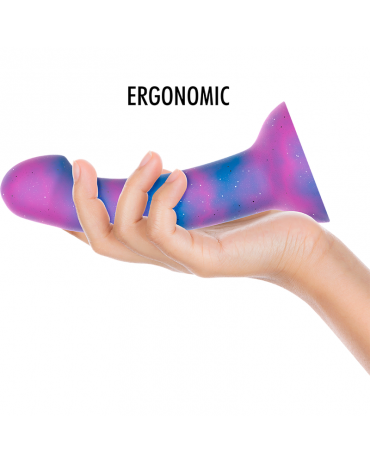 Ideato per esaltare e potenziare l’orgasmo femminile, questo dildo fantasy si distingue per la sua curvatura studiata, che insieme alla punta sagomata estende l’angolo di penetrazione, regalando un’esperienza unica a ogni donna desiderosa di stimolare le zone erogene come il Punto G, rendendo il raggiungimento dell’orgasmo semplice e naturale. DION sfoggia una finitura galattica che non passa inosservata, perfetta per chi vuole rompere gli schemi e dare un tocco di novità al proprio cassetto dei piaceri.