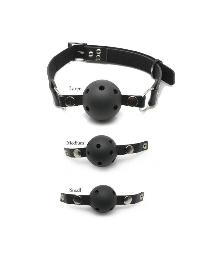 - 3 bavagli a sfera traspiranti intercambiabili (S, M, L)