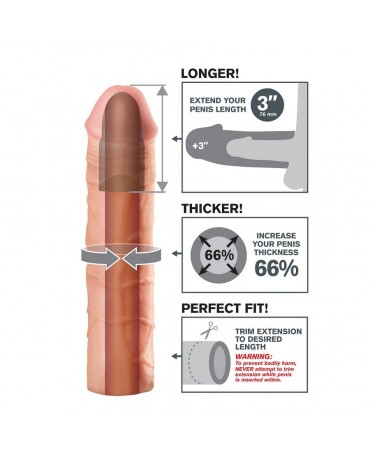 La Mega 3” Extension è un’estensione personalizzabile che puoi facilmente accorciare alla base per adattarla perfettamente a te. Grazie alla sua grande elasticità, si adatta alla maggior parte delle misure, mantenendo una presa salda che ti aiuta a durare più a lungo. Il tuo partner apprezzerà una penetrazione più profonda grazie all’estensione di 3" sulla punta, mentre il fusto ultra realistico ti rende il 66% più spesso su tutta la circonferenza. Il morbido materiale Fanta Flesh dona una sensazione naturale, come una seconda pelle, offrendoti lunghezza, spessore e sicurezza per soddisfare davvero chi ami.