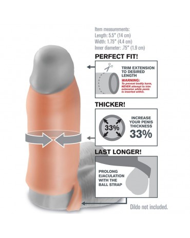 Il Real Feel Enhancer è un manicotto regolabile che puoi adattare facilmente tagliandolo sulla punta, assicurando una vestibilità perfetta. Il design con testa aperta ti permette di mantenere tutte le sensazioni naturali, godendo al contempo di una maggiore dimensione. Realizzato in materiale super elastico, si adatta alla maggior parte delle taglie, è abbastanza aderente da aiutarti a durare più a lungo e dispone di una pratica cinghia a sfera che ritarda l’eiaculazione per orgasmi più intensi. La manica Fanta Flesh, morbida e confortevole, aumenta la circonferenza del 33%, donandoti la sicurezza necessaria per conquistare il tuo partner.