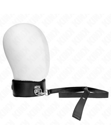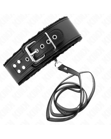 KINK - COLLANA CON GUINZAGLIO 116 CM CON BORCHIE IN ARGENTO MODELLO 4 NERO REGOLABILE 40-48 CM X 6 CM