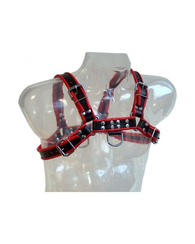 LEATHER BODY - BODY CATENA IN PELLE IMBRACATURA III NERO / ROSSO