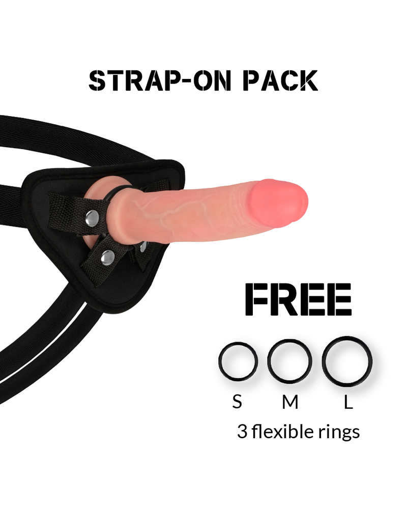 L’imbracatura è progettata per tenere saldo il dildo durante ogni movimento e include tre anelli in silicone di diverse dimensioni, per adattarsi perfettamente a ogni esigenza.