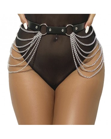 SUBBLIME - CINTURA CON CATENA IN PELLE NERA TAGLIA UNICA