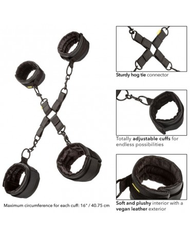 Imbriglia il tuo partner sottomesso legandogli mani e piedi dietro la schiena o davanti, sfruttando al massimo ogni posizione. Grazie ai 2 polsini regolabili per le caviglie e alle 2 manette per i polsi, anch’esse completamente regolabili, e alle chiusure a strappo in stile Velcro, questa legatura garantisce sicurezza e adattabilità. I fermagli universali e gli o-ring girevoli assicurano massima libertà di movimento e comfort, anche quando si è completamente immobilizzati.