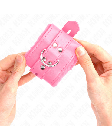 KINK - POLSINI IMBOTTITI IN PELLICCIA CON FORI QUADRI ROSA E CINTURA ROSA REGOLABILE 17-29 CM X 6 CM