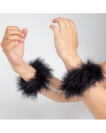 Scopri il piacere del bondage con queste manette avvolte da morbide piume nere, pensate per chi vuole avvicinarsi al gioco di ruolo in modo delicato e sensuale.