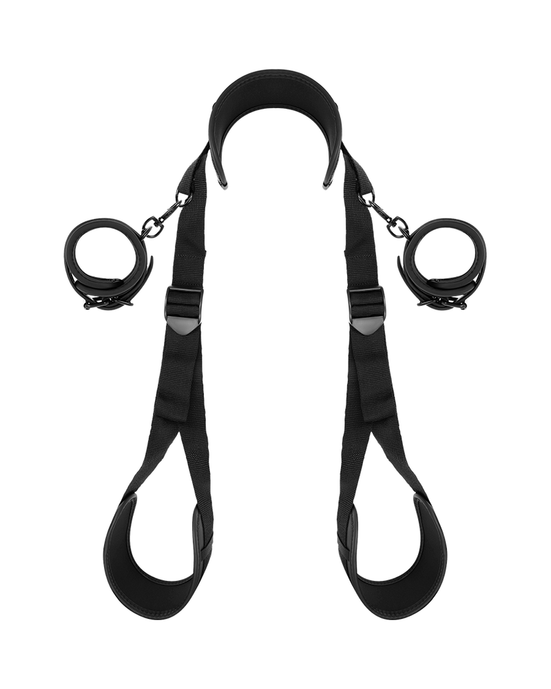 FETISH SUBMISIVE presenta un set esclusivo di restrizioni pensato per garantire la posizione ideale del partner durante la penetrazione con le gambe sollevate.