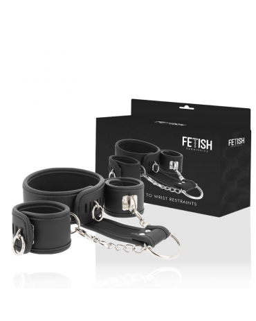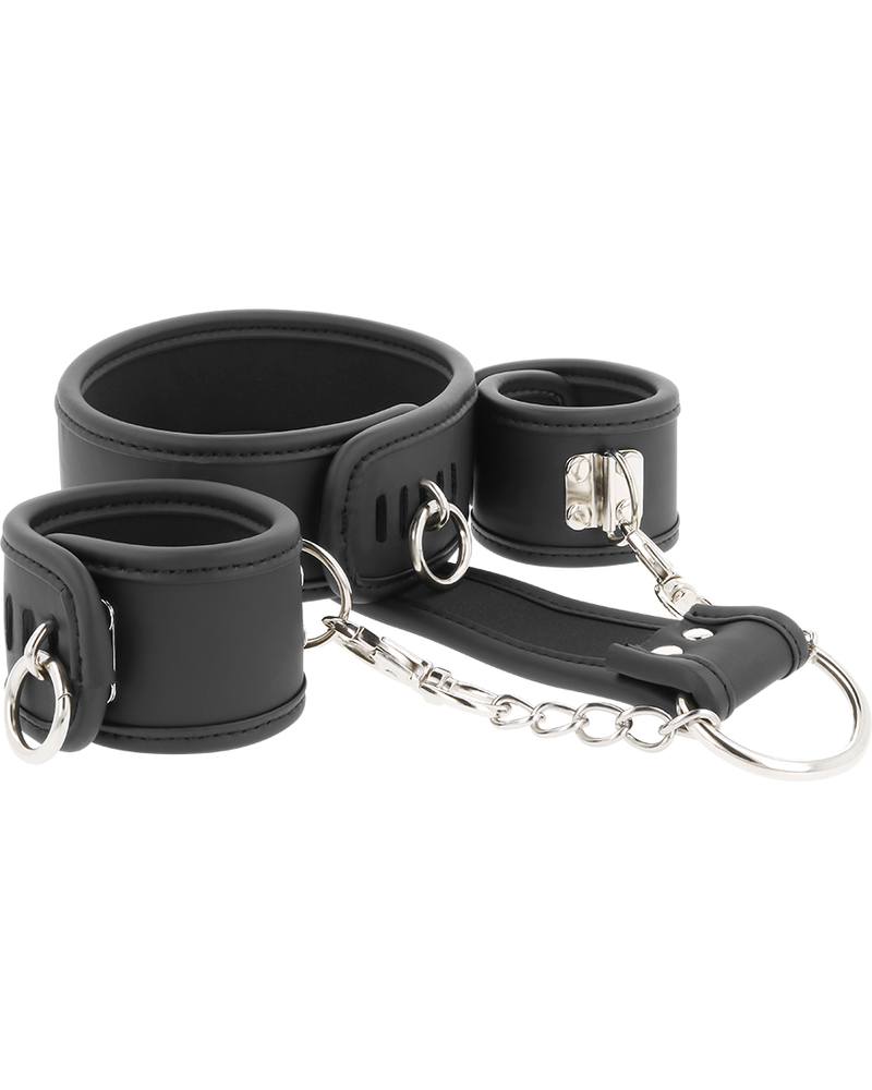 FETISH SUBMISSIVE - COLLANA E MANETTE IN PELLE VEGANA CON FODERA IN NOPRENE