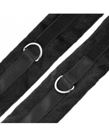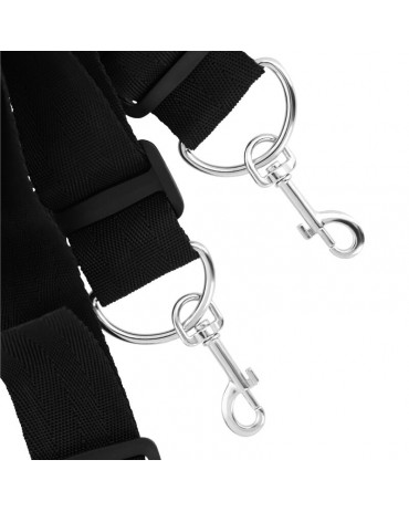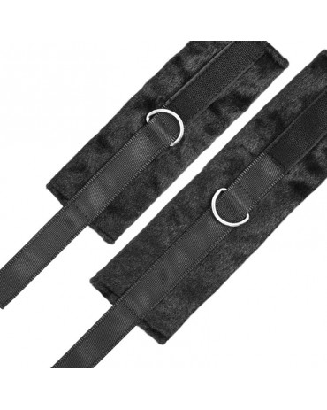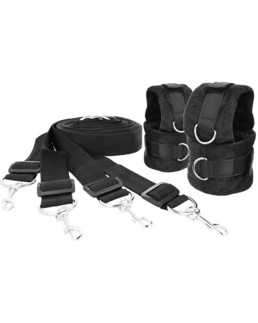 Il set include 4 punti di ancoraggio, progettati per adattarsi con sicurezza a materassi di qualsiasi dimensione. I polsini per caviglie e polsi, realizzati in morbido neoprene, sono rimovibili per garantire il massimo comfort, mantenendo però sempre il controllo desiderato.