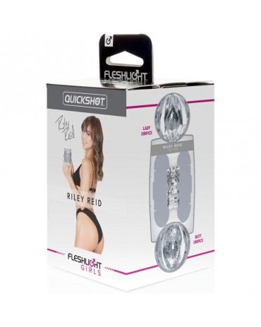 Il Riley Reid Quickshot è un dispositivo che riproduce fedelmente i dettagli anatomici della vagina e dell'ano di Riley, con aperture libere per un'esperienza realistica. È ideale sia come stimolazione aggiuntiva durante il gioco orale di coppia, sia per la masturbazione individuale.