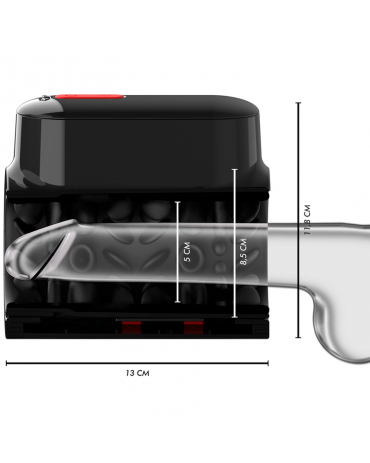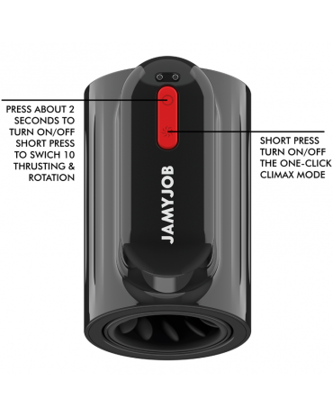 Il masturbatore maschile JAMYJOB VORTEX con movimento su e giù è un dispositivo di piacere ad alte prestazioni, progettato per portarti a livelli di soddisfazione mai provati prima. Dal design elegante in nero con dettagli rosso intenso, questo prodotto vanta caratteristiche davvero eccezionali.