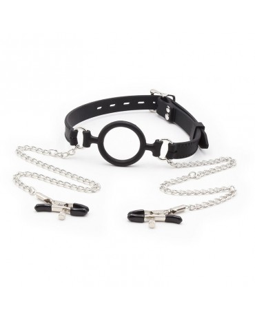 OHMAMA FETISH - Bavaglio ad anello con catenelle e pinze per capezzoli