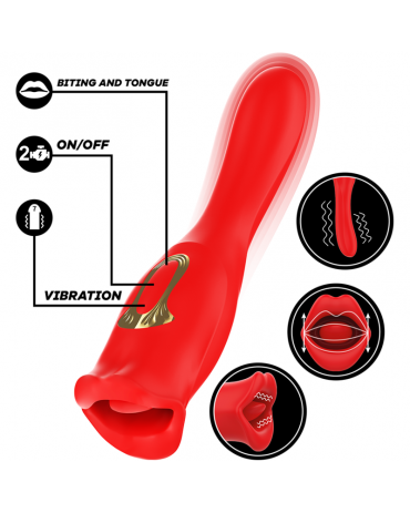 Scopri l39arte della seduzione con questo stimolatore che combina perfettamente design d39avanguardia e tecnologia all39avanguardia. Aggiungi eccitazione ai tuoi momenti intimi e lascia che la passione sbocci con ogni morso e vibrazione di questo accattivante giocattolo a forma di bocca.