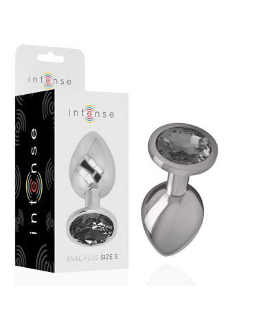 INTENSE - PLUG ANALE IN METALLO ALLUMINIO CON CRISTALLO NERO TAGLIA S