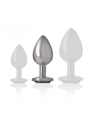 INTENSE - PLUG ANALE IN METALLO ALLUMINIO CON VETRO NERO TAGLIA M