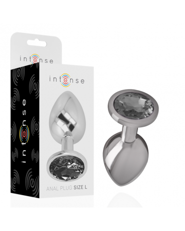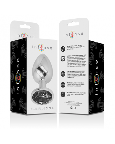 INTENSE - PLUG ANALE IN METALLO ALLUMINIO CON VETRO NERO TAGLIA L