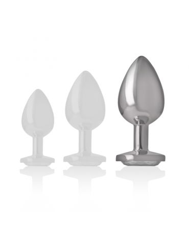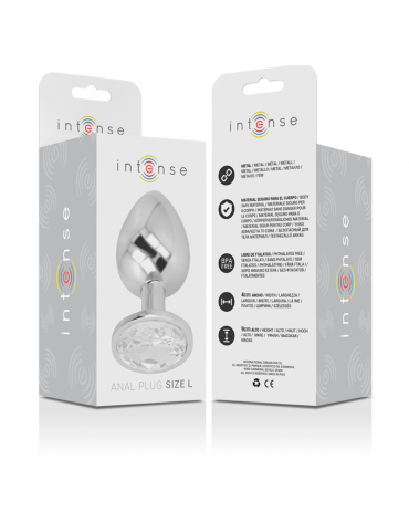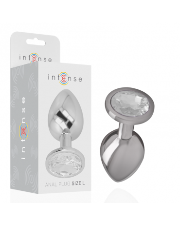 INTENSE - PLUG ANALE IN METALLO ALLUMINIO CON CRISTALLO ARGENTO MISURA L