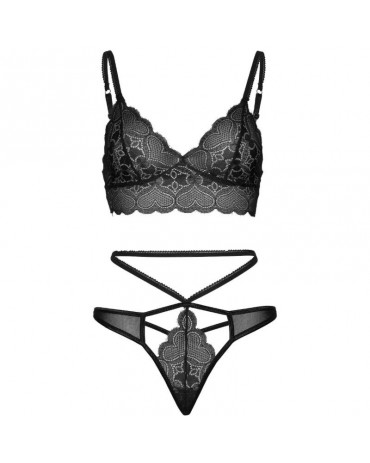 Scopri il fascino irresistibile di questo set da 2 pezzi firmato Leg Avenue: una bralette in pizzo con scollo a cuore e un perizoma coordinato con spalline ritagliate, pensati per esaltare la tua femminilità.