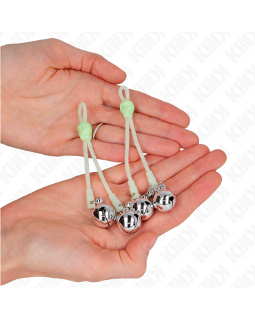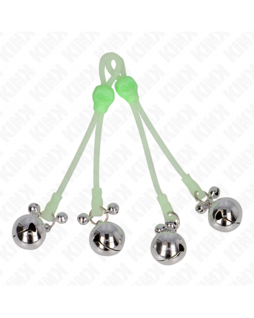 KINK - PINZE PER CAPEZZOLI TESCHIO LUMINOSO CON ANELLO CAMPANE REGOLABILI VERDE/ARGENTO