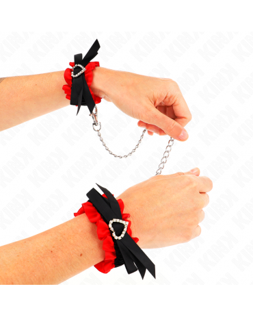 KINK - POLSO ELASTICO IN PIZZO DETTAGLI CUORE ROSSO REGOLABILE 22-35 CM