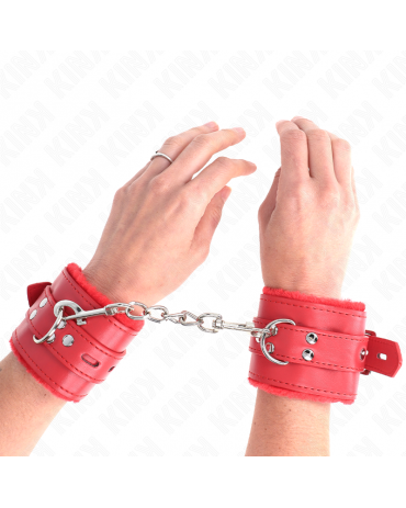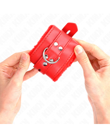KINK - POLSINI IMBOTTITI IN PELLICCIA CON FORI QUADRI ROSSO E CINTURA ROSSA REGOLABILE 17-29 CM X 6 CM
