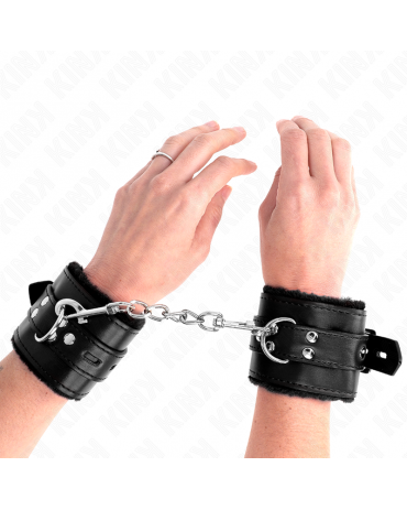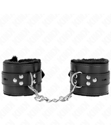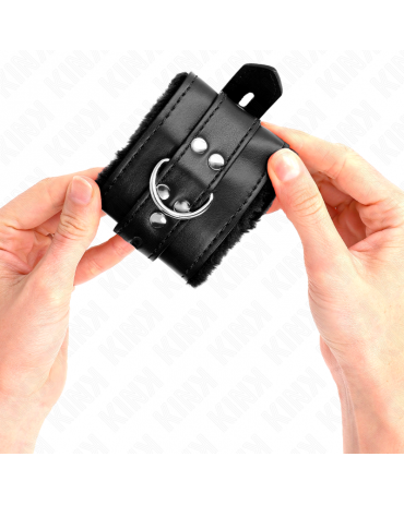 KINK - POLSINI IMBOTTITI IN PELLICCIA CON FORI QUADRI NERI E CINTURA NERA REGOLABILE 17-29 CM X 6 CM