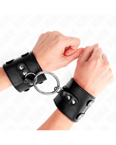 KINK - POLSO FISSO CON ANELLO E BORCHIE REGOLABILE NERO 17-22 CM X 6,5 CM
