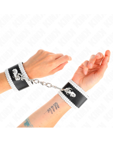 KINK - POLSO NERO CON PIZZO DECORATO BIANCO REGOLABILE 20-23 CM X 5,5 CM