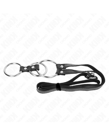 KINK - ANELLO PER PENE IN METALLO TRIPLO DA 3,8 CM A 5 CM CON CINTURA IN PELLE 112 CM
