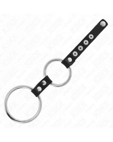 KINK - DOPPIO ANELLO PER PENE IN METALLO DA 3,8 CM A 5 CM COLLEGATO CON PELLE
