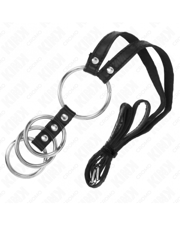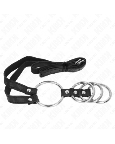 KINK - 4 ANELLI PER PENE IN METALLO COLLEGATI DA 3,8 CM A 5 CM CON CINTURA IN PELLE 112 CM