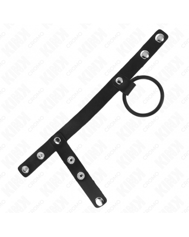 KINK - ANELLO PER PENE IN SILICONE 3,8 CM CON DIVISORE PER PALLINE E CINTURINO IN PELLE 22 X 1,5 CM