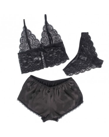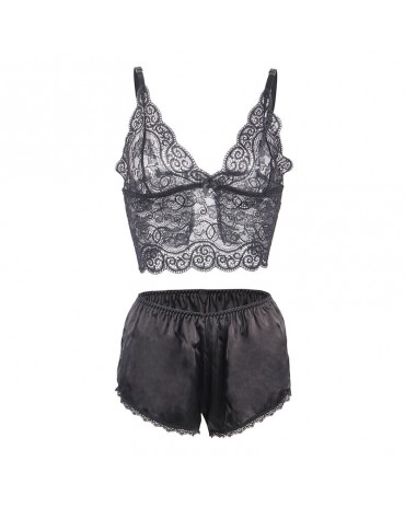 SUBBLIME - 953911 CAMICIA DA NOTTE IN SETA E PIZZO + SLIP NERO S/M