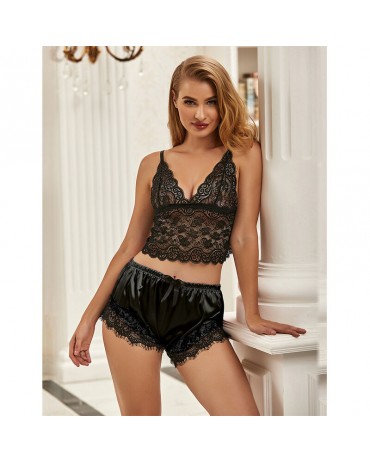 SUBBLIME - 953935 VESTAGLIA DA NOTTE CASUAL IN SETA + PANTALONI IN PIZZO NERO S/M