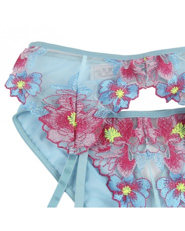 SUBBLIME - 954109 REGGISENO + SLIP CON CINTURA REGGISENO FLOREALE BLU S/M