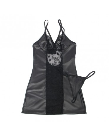 SUBBLIME - 954161 VESTITO + PERIZOMA PELLE NERO S/M
