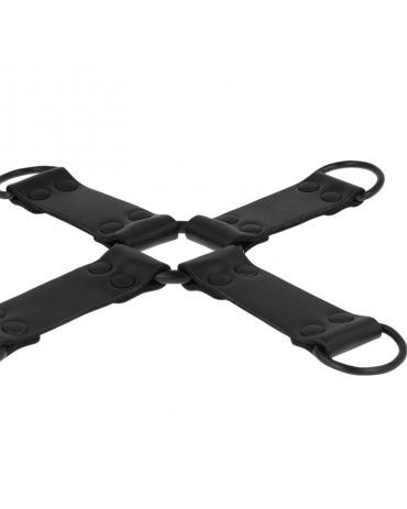 Realizzato in pelle vegana di alta qualità, questo sistema unisce comfort e robustezza, garantendo un gioco intimo senza pensieri. Le morbide cinghie (non incluse) si adattano perfettamente agli arti, mantenendo la persona nella posizione desiderata e aprendo la strada a momenti di passione e complicità.