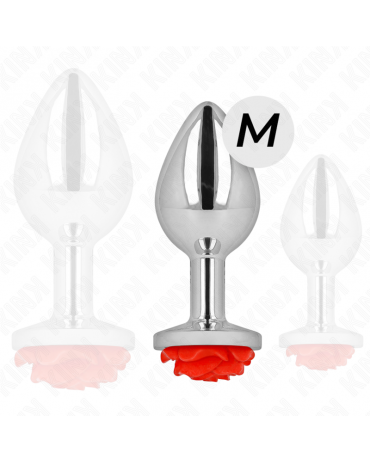 Plug anale in metallo con decorazione a forma di rosa rossa – elegante, liscio e piacevole al tatto