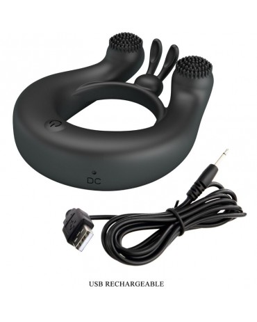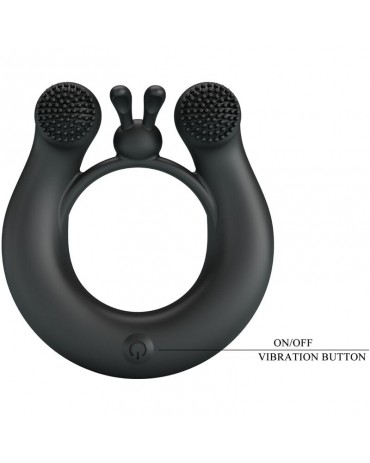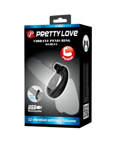 PRETTY LOVE - ANELLO VIBRANTE DAHLIA + STIMOLATORE CLITORIDEO 12 VIBRAZIONI NERO
